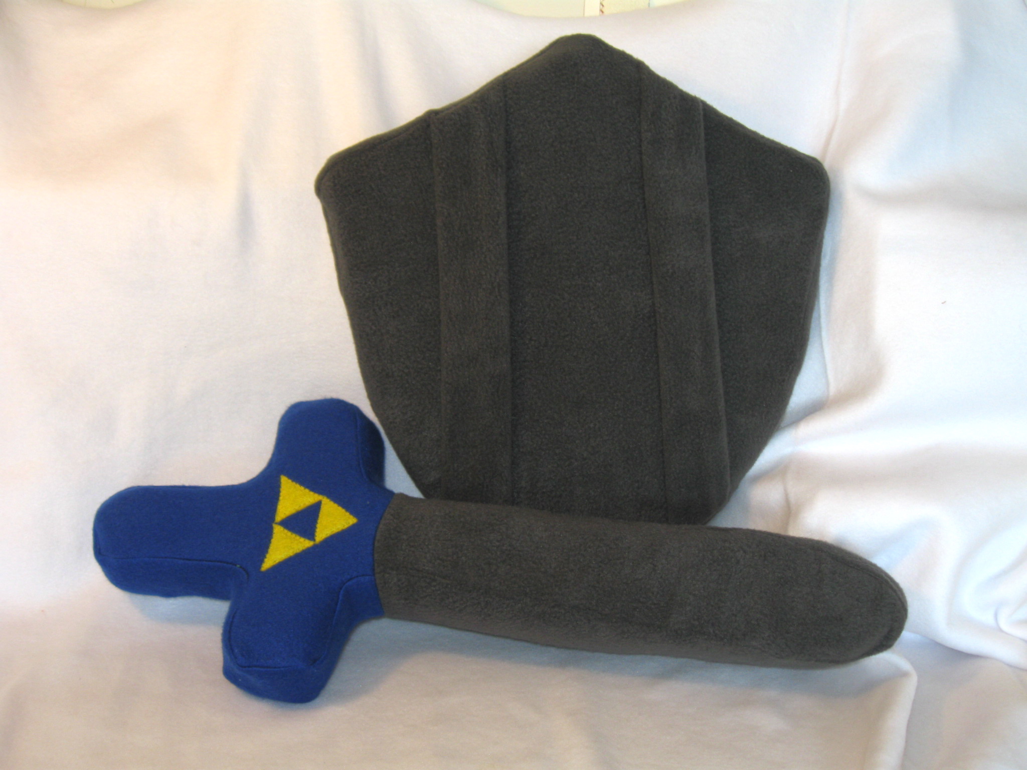 Save the princess! Or just wallop your friends with this beautifully embroidered sword and shield set. Both toys are foam bases covered in soft fleece fabric. Shield includes straps on the back for defending or wearing.