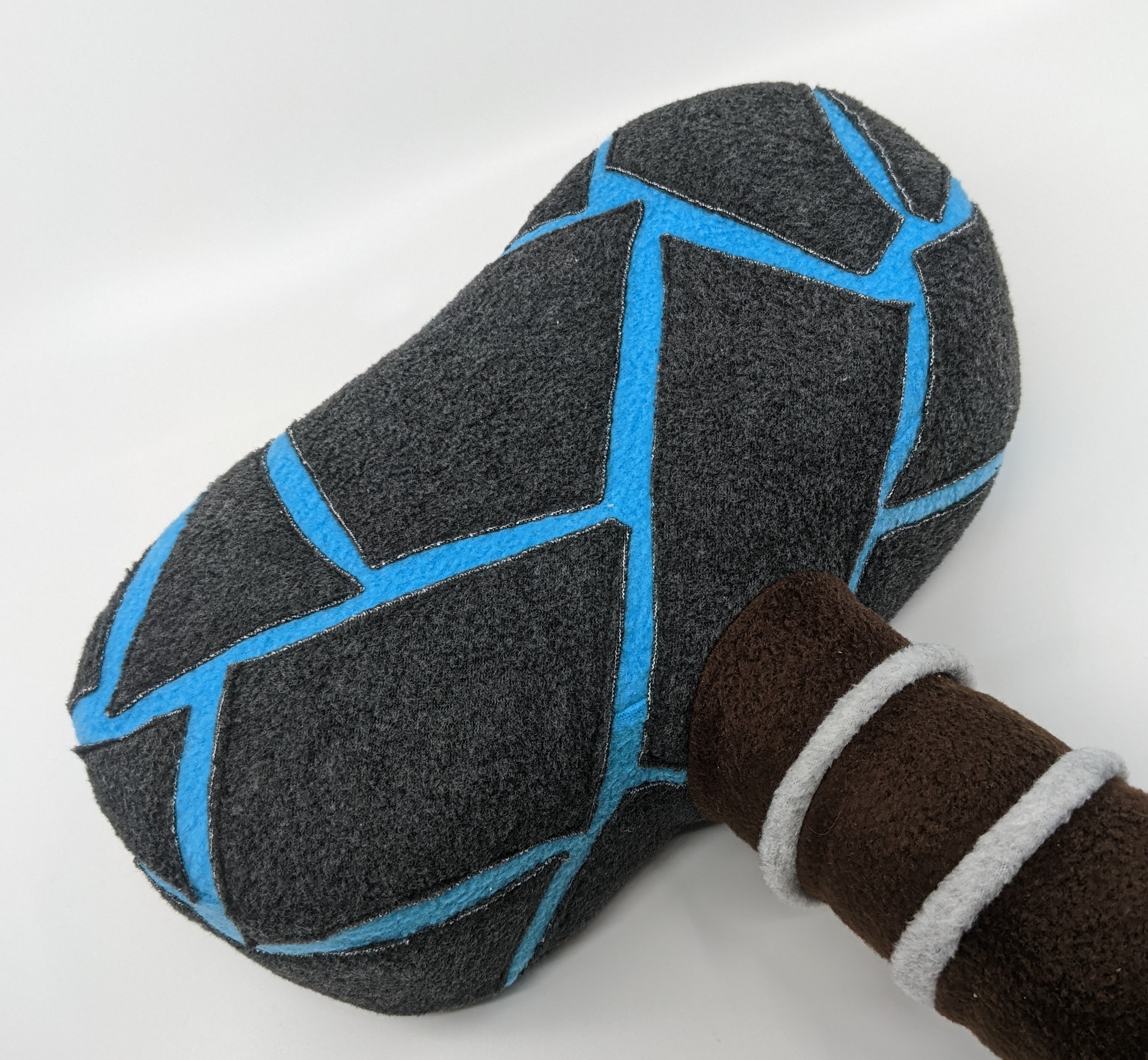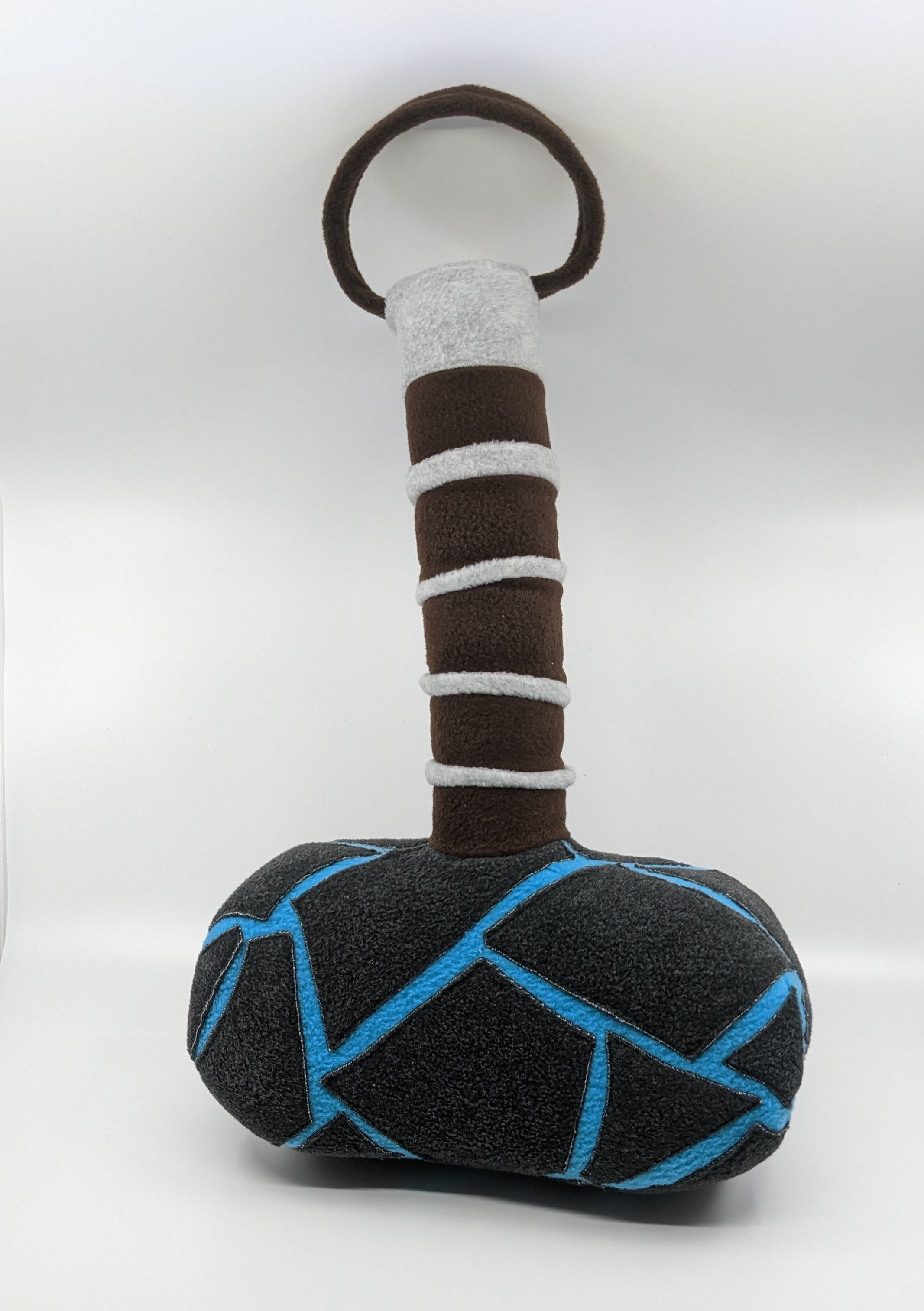 Never put this hammer down! This foam, fleece and felt hammer has a loop fit for swinging. The head of the hammer is embroidered with the words "Whoever holds this hammer, if he be worthy, shall possess the power of Thor!"