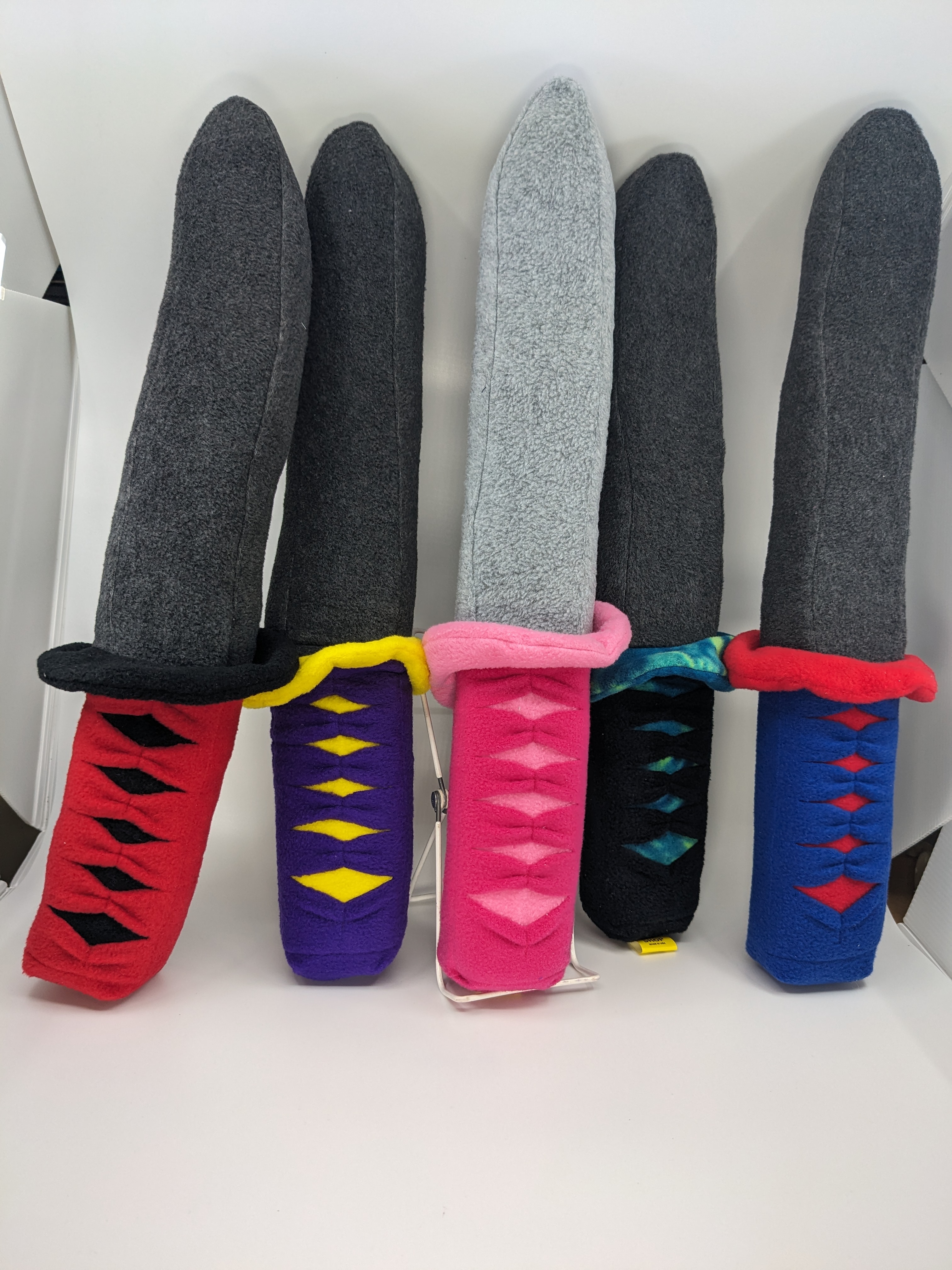 Get your ninja skills on with this awesome plushie katana! Soft foam interior and soft foam exterior. All attitude and no harm. Great for cosplay, napping, children's safe fighting toy, or anything else your imagination can dream up. Sword measures 23" in length with fabric ruffled hand guard and detailed "wrapped" handle.