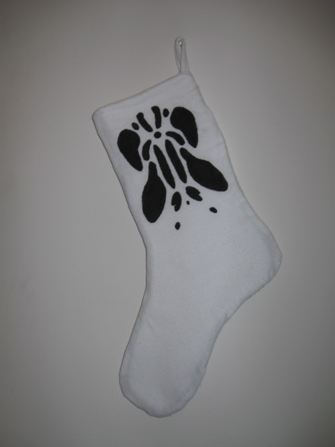 What do you see? Just the most awesome Xmas Sox ever! White Sox with handprinted design.